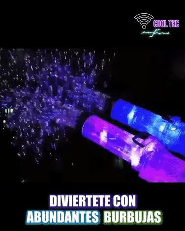 Cuenta con 21 agujeros la pistola de juguete que te asegura abundantes burbujas y varias horas de juegos para los consentidos de la casa